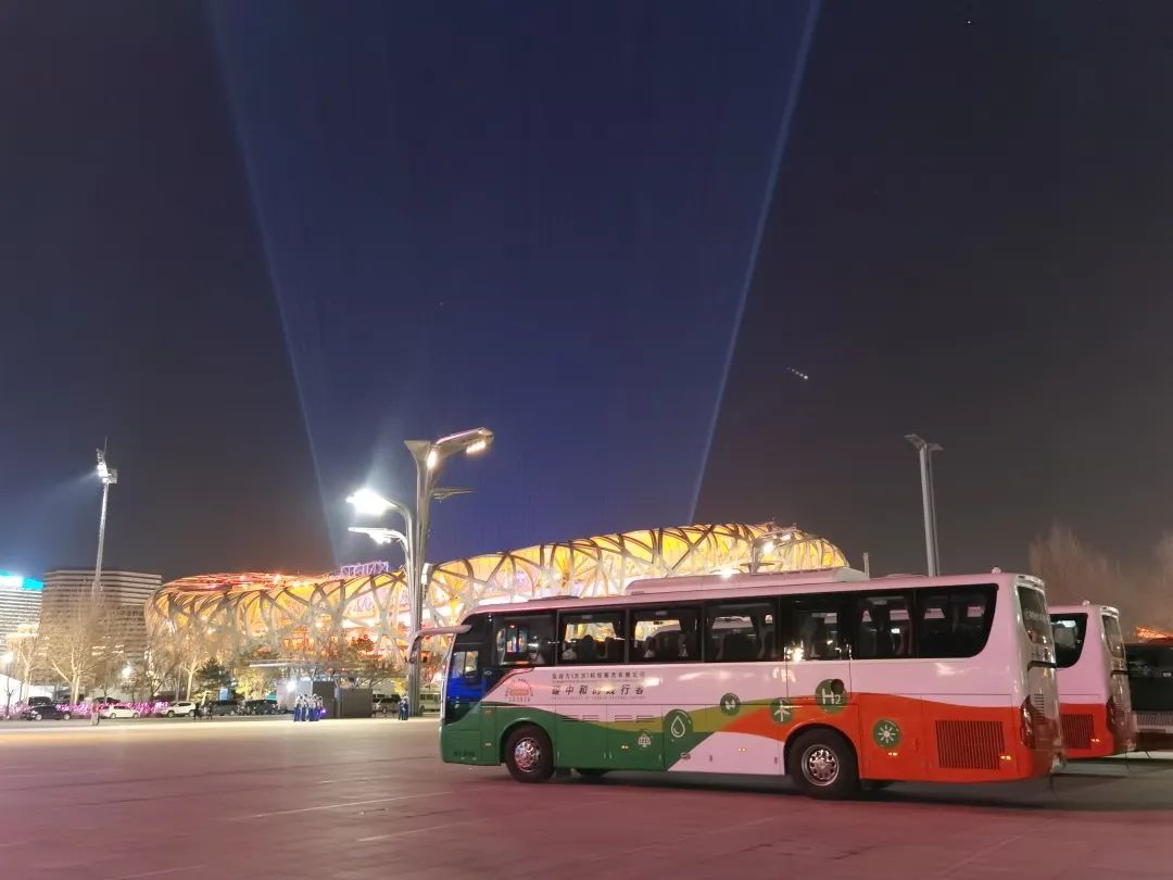 ▲搭载“氢腾”燃料电池系统的大巴车服务2022年北京冬奥会