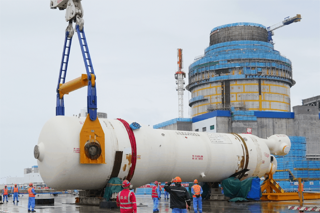 8月13日,sunbet申愽官网山东核电海阳核电4号机组核岛首台蒸汽发生器顺利吊装就位,为核岛反应堆主回路的贯通和反应堆厂房的封顶奠定了坚实的基础。