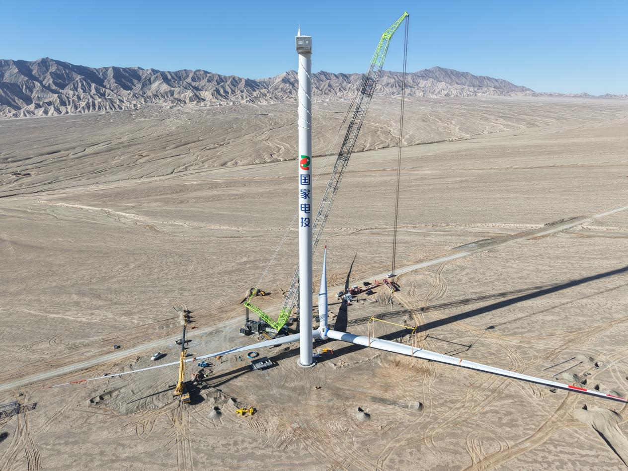 此次吊装的风机轮毂中心高120米,风轮直径216米,叶片最大扫风面积约36642平方米,采用双馈机型,能够高效利用当地风能资源,实现发电量最大化和单位度电成本最低。所有风机均配置机组状态及振动在线监测、塔筒晃动及基础不均匀沉降观测、叶片振动在线监测等系统,可实时监测风机运行状态,自动诊断设备故障并提前预警,提升运维效率、降低运维成本。