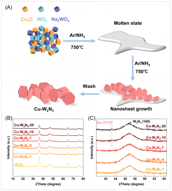 该团队使用改进的熔盐方法合成了二维Cu-W2N3纳米片,确保了铜的原子分散而不是聚集成纳米颗粒。先进的显微镜和光谱学证实了在W2N3晶格中嵌入1氧化态的Cu单原子位点的存在。这些位点改变了电子结构,创造了Cu-N-W电子通道,促进了电荷从CdS到助催化剂的快速转移。性能测试表明,CdS/Cu?W2N3混合物的产氢率为172.69 μmol·h-1,选择性高达93.7-95%,明显高于裸CdS(45%)或CdS/W2N3(83%)。