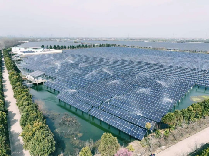 ▲安徽公司淮南公司盘塘光伏电站全周期智慧清洗系统正在清洗组件。