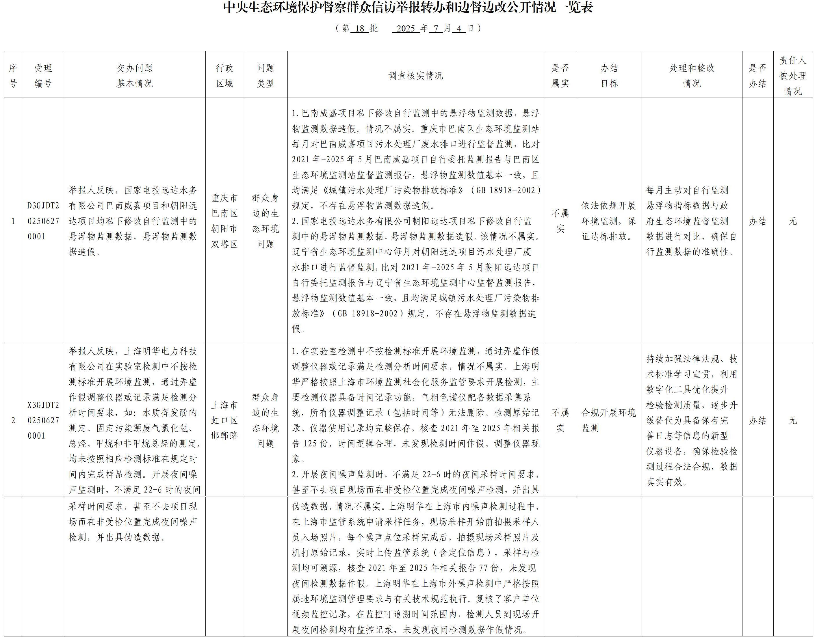 中央生态环境保护督察群众信访举报转办和边督边改公开情况一览表(第十八批)